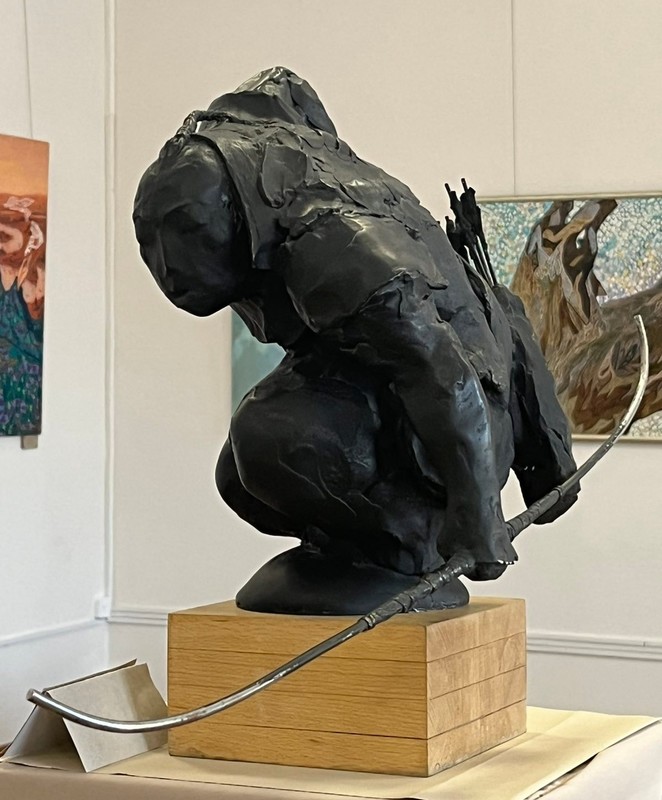 На центральной стене выставочного зала – живописные произведения с изображением тотемных животных основных бурятских родов: «Буха-нойон. Небесный бык» Асалхановой Е.В., «Волк», «Пестрый бык» В. Урбаханова. На выставке представлены графические и скульптурные произведения П. Михайлова. Острая характеристика образа, динамичность присущи его скульптуре «Мэргэн. Стрелок».