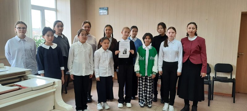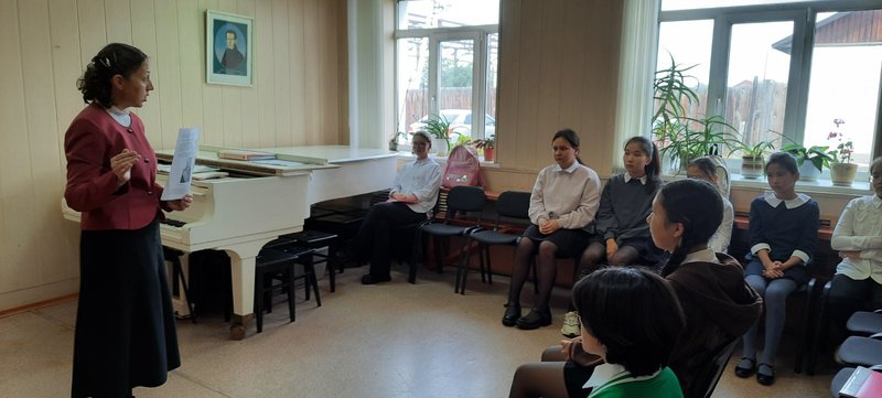 Руководитель хора" Ровесник " Виктория Викторовна Белобородова рассказала учащимся о Федоре Федоровиче Брюховецком – советском педагоге, директоре школе, заслуженном учителе РСФСР, кандидате педагогических наук (г. Краснодар), в конце мероприятия хор исполнил Гимн РФ. Доржижанова Оксана Васильевна на уроке оркестра рассказала учащимся о музыкальных инструментах родного края, мероприятие закончилось исполнением музыки бурятских композиторов.