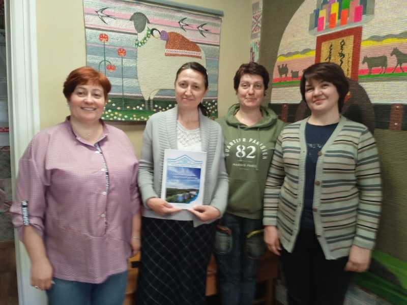 На фото слева направо: Дмитриева Н.В. (сотрудник ГБУК "ИОДНТ»), Белобородова В.В. (автор сборника), Баруткина Е.А., Разумная Н.В. (сотрудники ГБУК «ИОДНТ»). Фото из личного архива Белобородовой В.В.