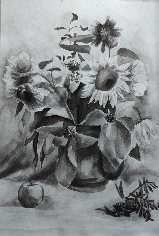 Лауреат II степени Готобон Арима, «Натюрморт с гипсовой розеткой», МБУ ДО Новонукутская ДШИ, преподаватель - Чернигова Галина Семёновна, Рыцева Нина Михайловна