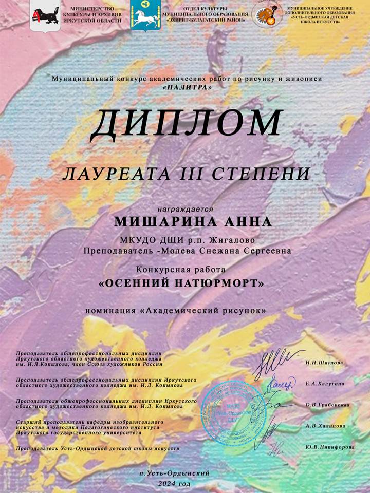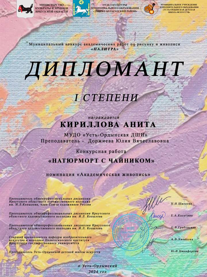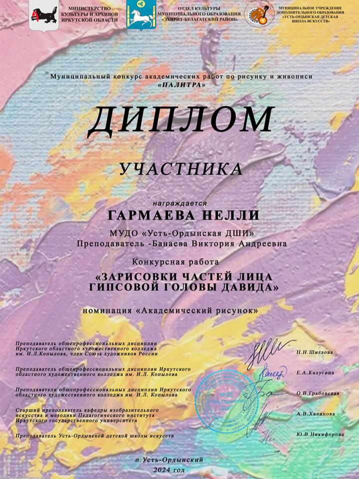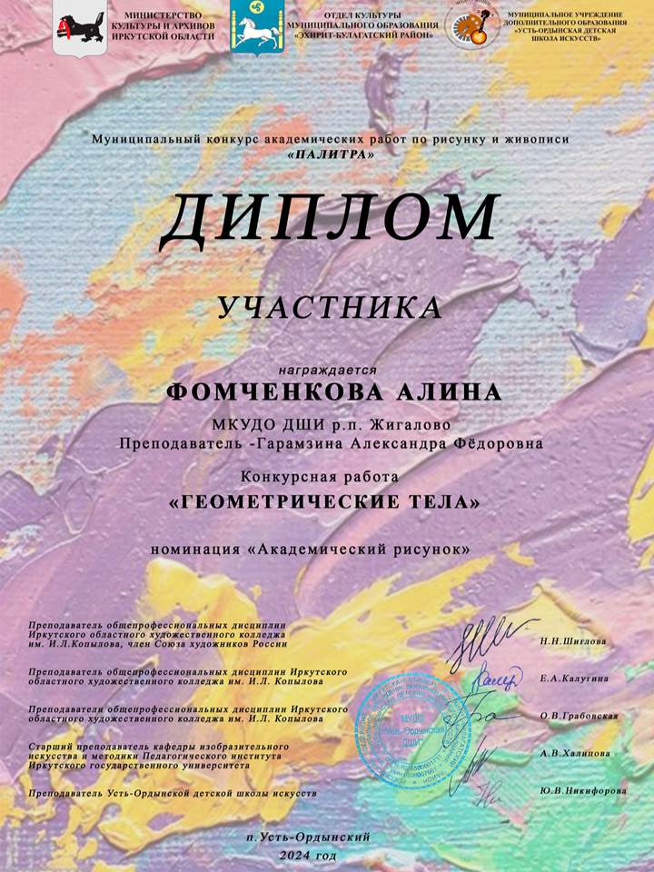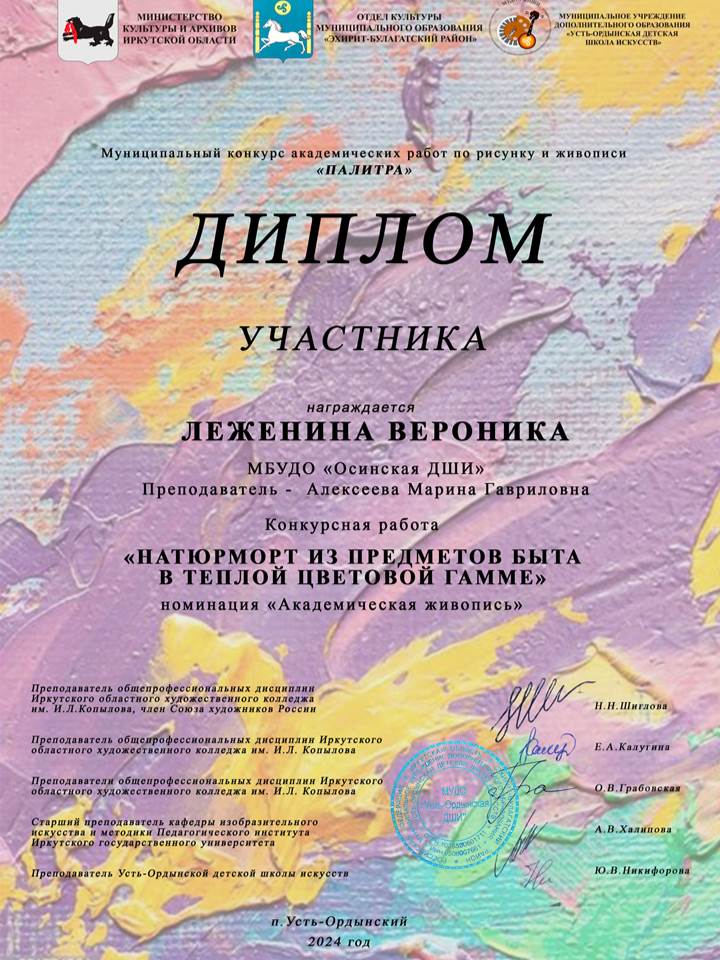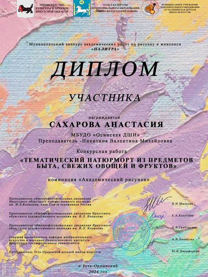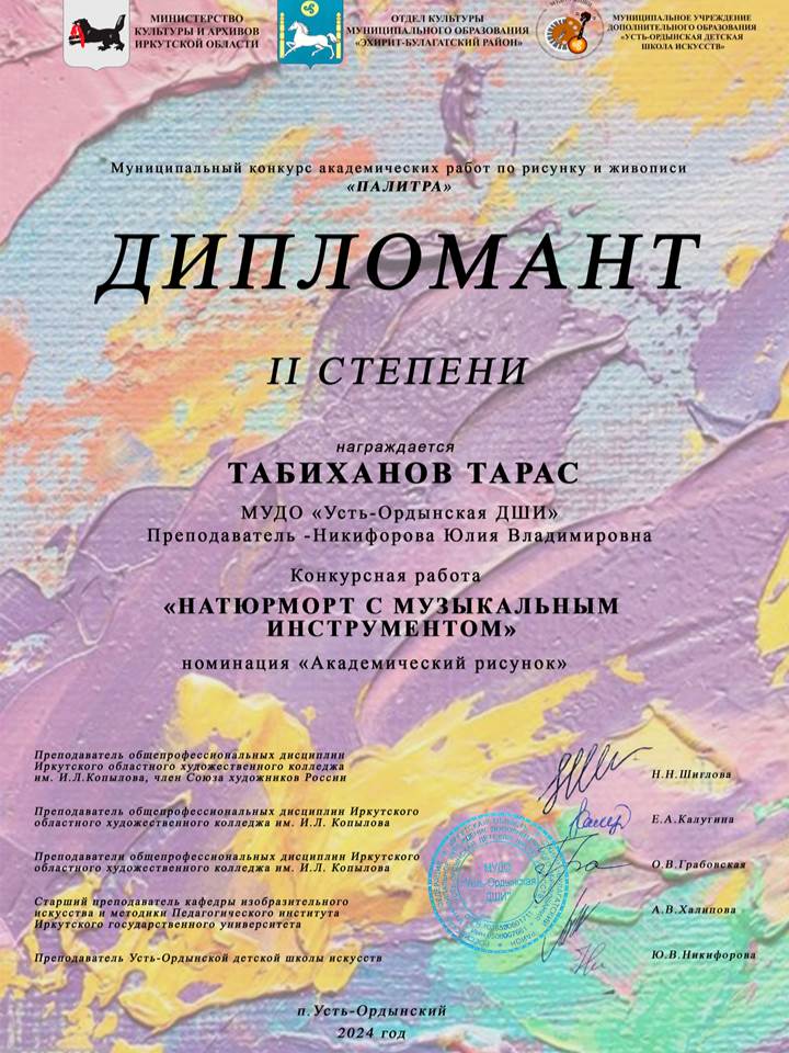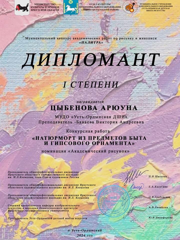 Дипломы Открытого муниципального конкурса академических работ по рисунку и живописи «Палитра»