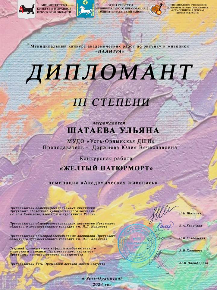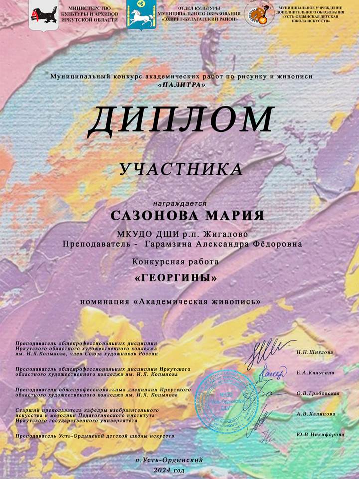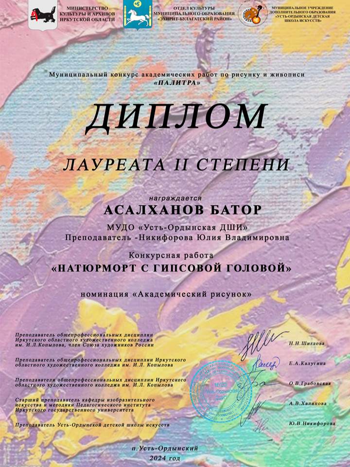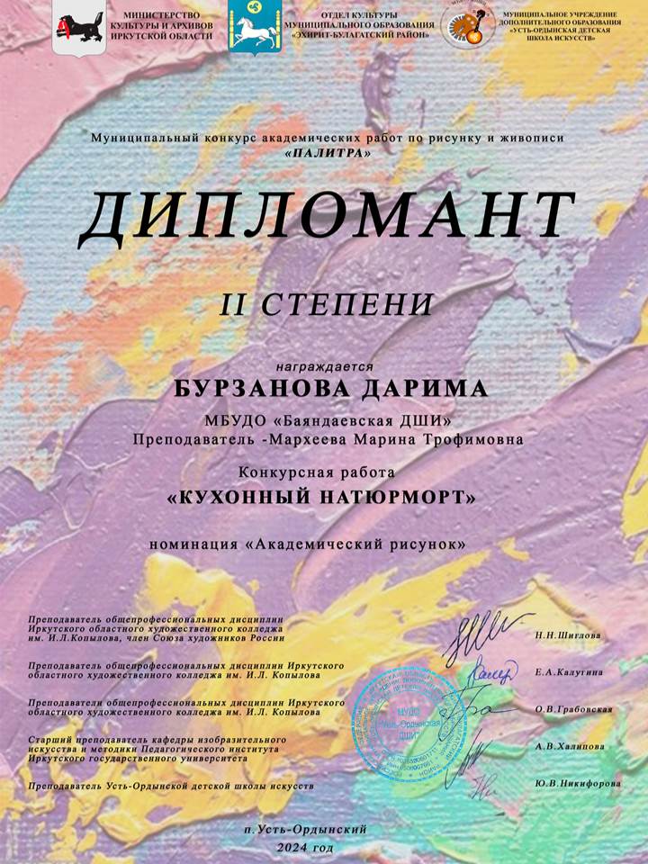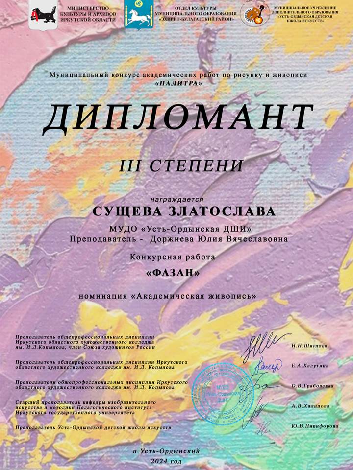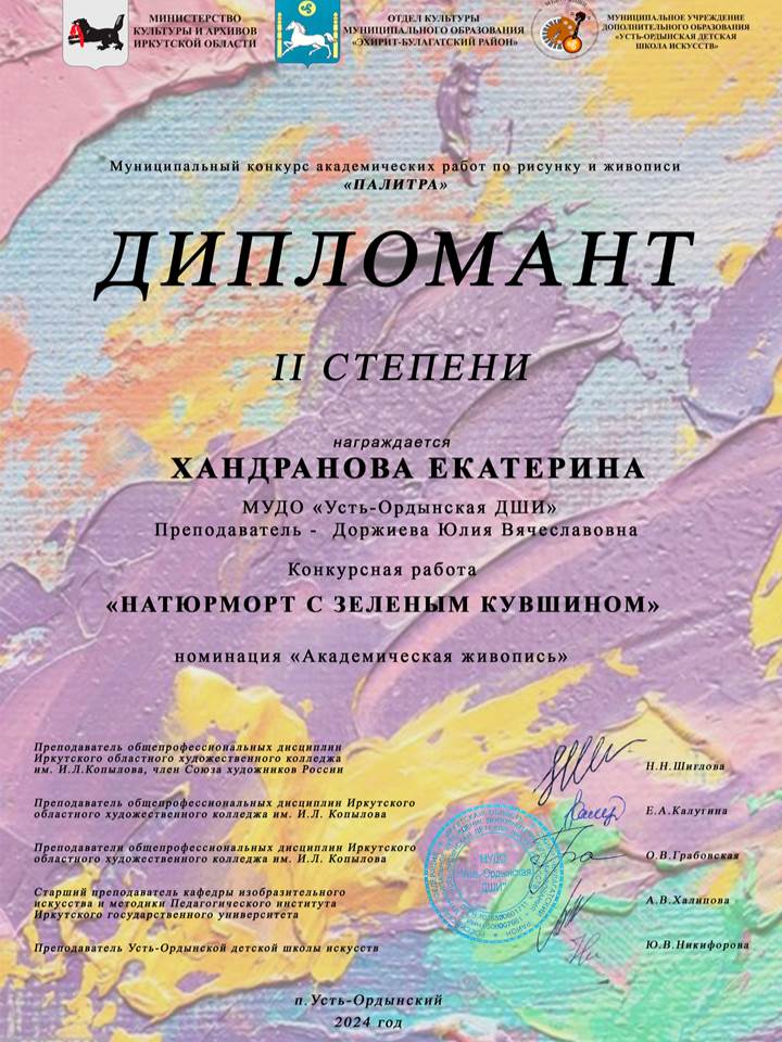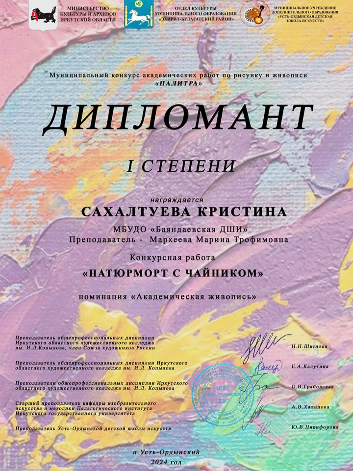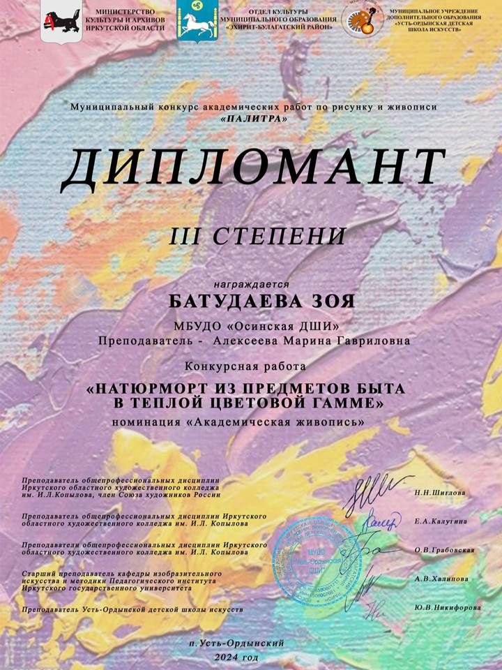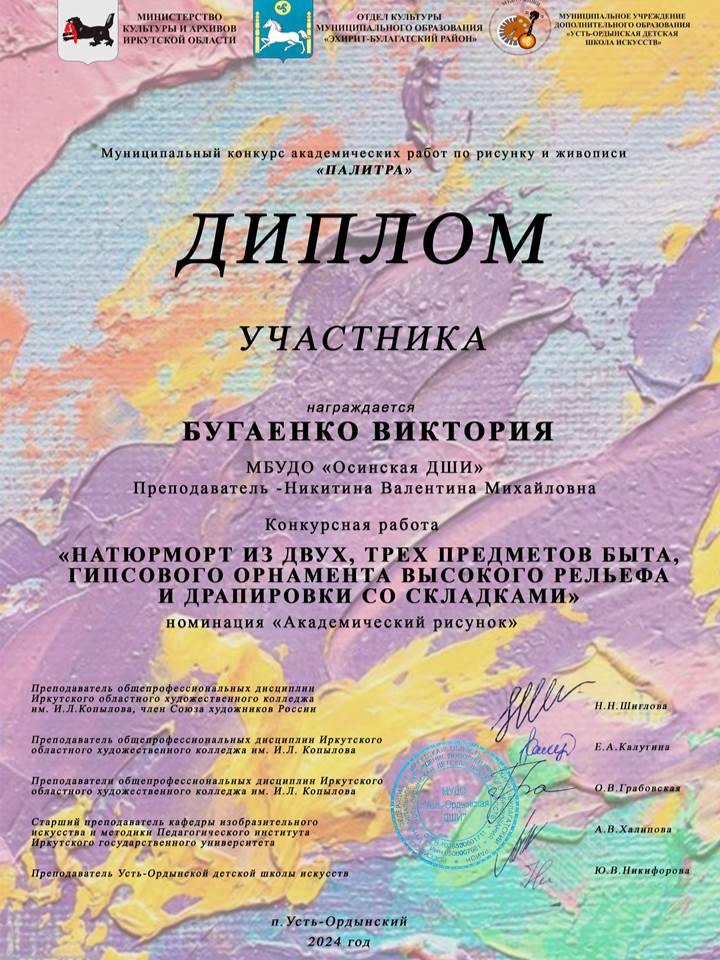 Дипломы Открытого муниципального конкурса академических работ по рисунку и живописи «Палитра»